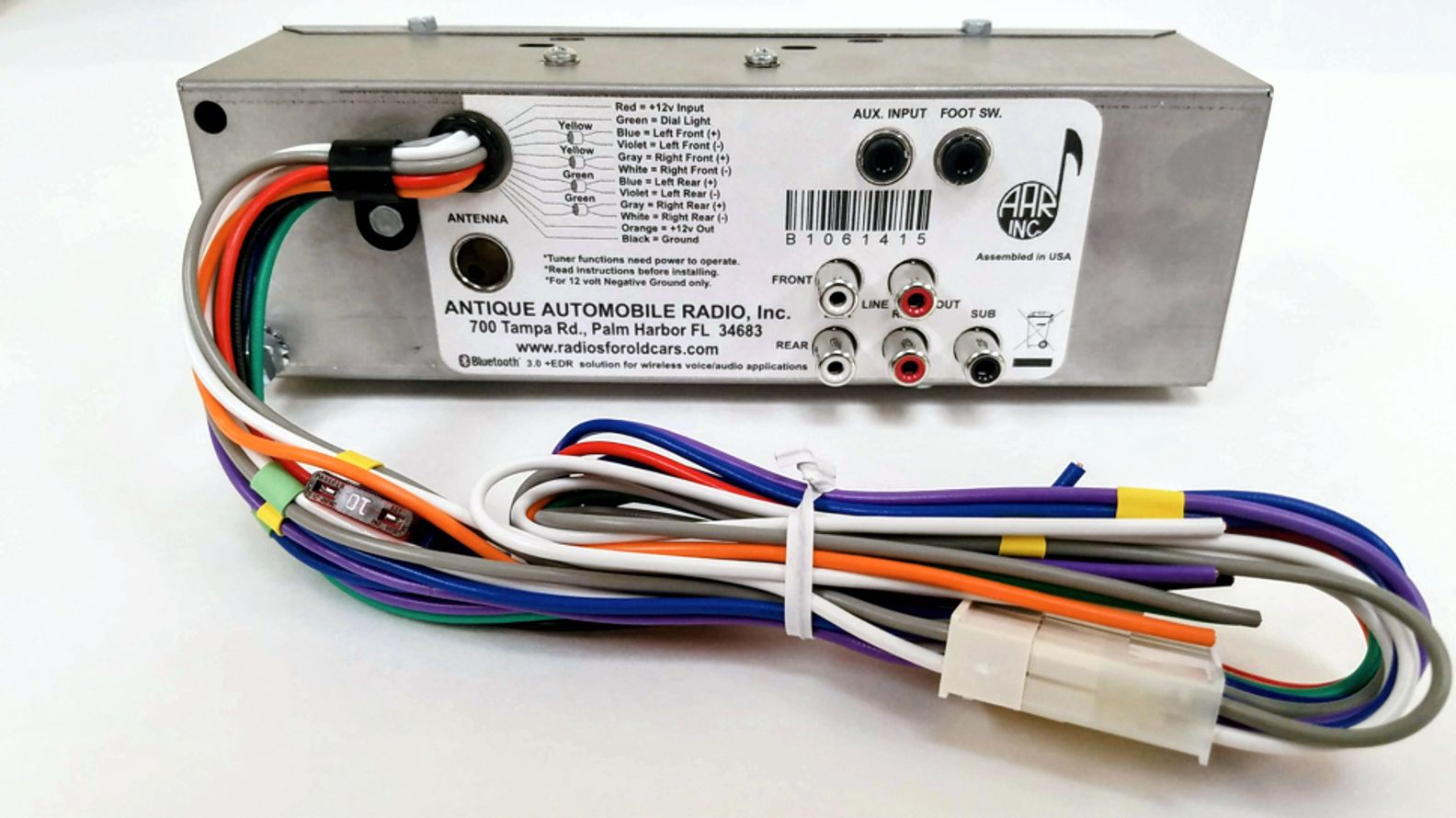 When the radio is powered on the dial pointer and knobs all move and work like the original. Every radio comes equipped with Bluetooth® for wireless audio streaming and hands-free phone control. Other features include a 3.5mm auxiliary port to plug in any compatible device such as an MP3 player or a CD player as well as another input jack specifically designed to work with our foot control switch.